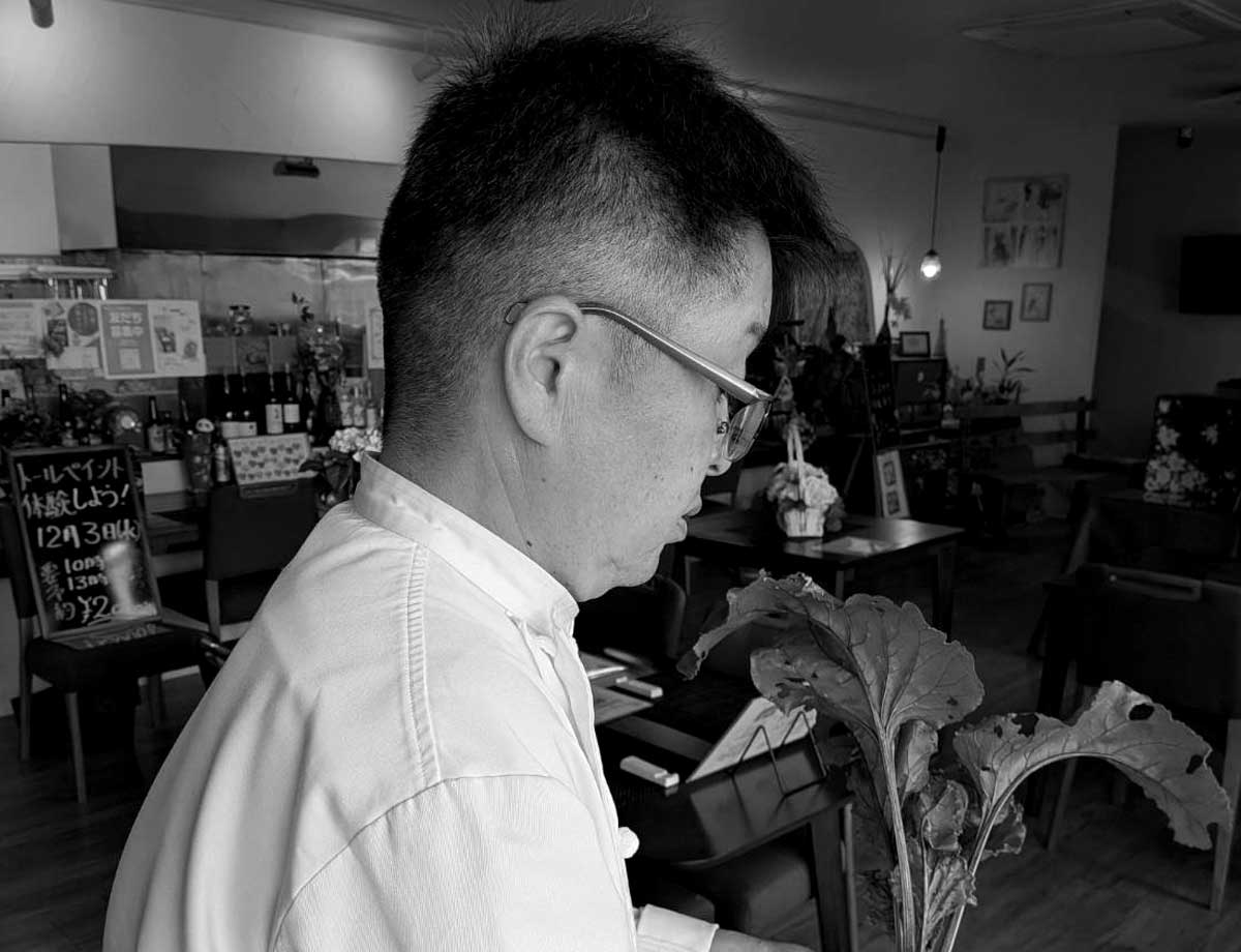 小さな菜園で自ら育てた野菜は、低農薬のため形が悪かったり、穴が空いたりしておりますが、豊かな大地の恵みを最大限に生かし、素材の持つ強い生命力を感じられる料理を、安心と感動と共にお届けいたします。